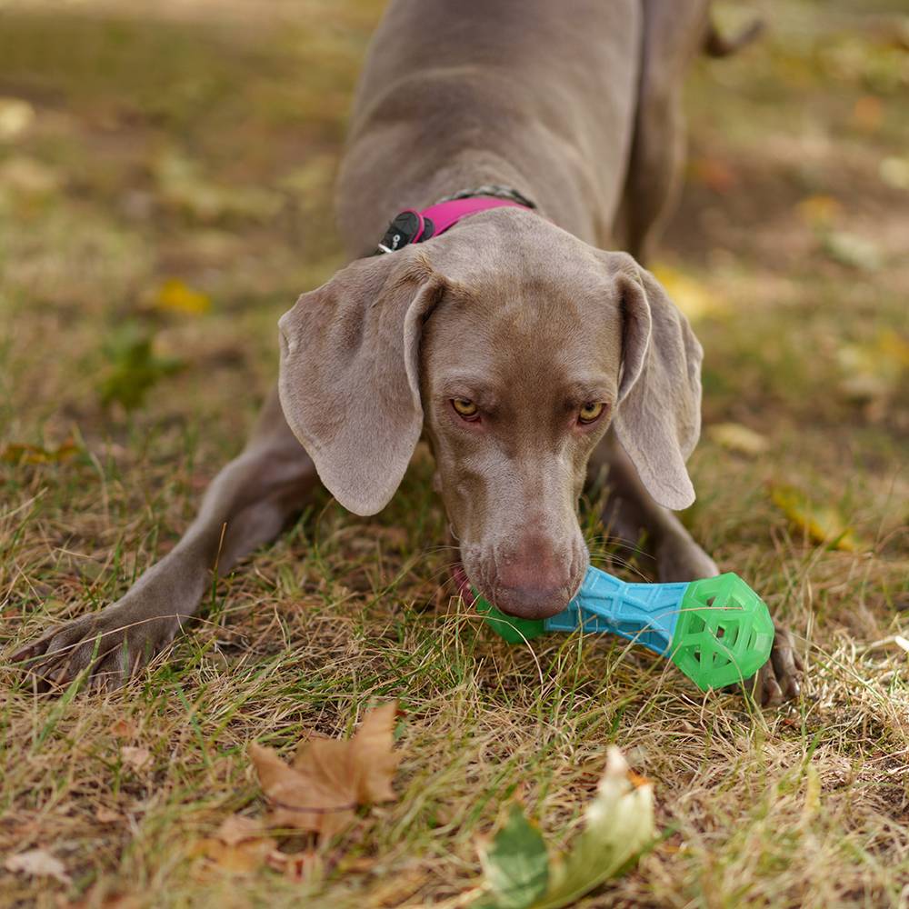 - Собака может кусать игрушку без вреда для зубов и десен.
