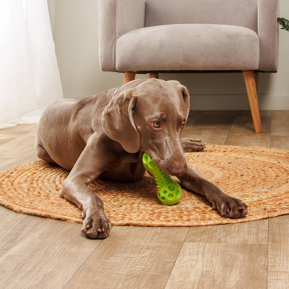 - Способствует тренировке жевательных мышц у собаки и массажу дёсен.