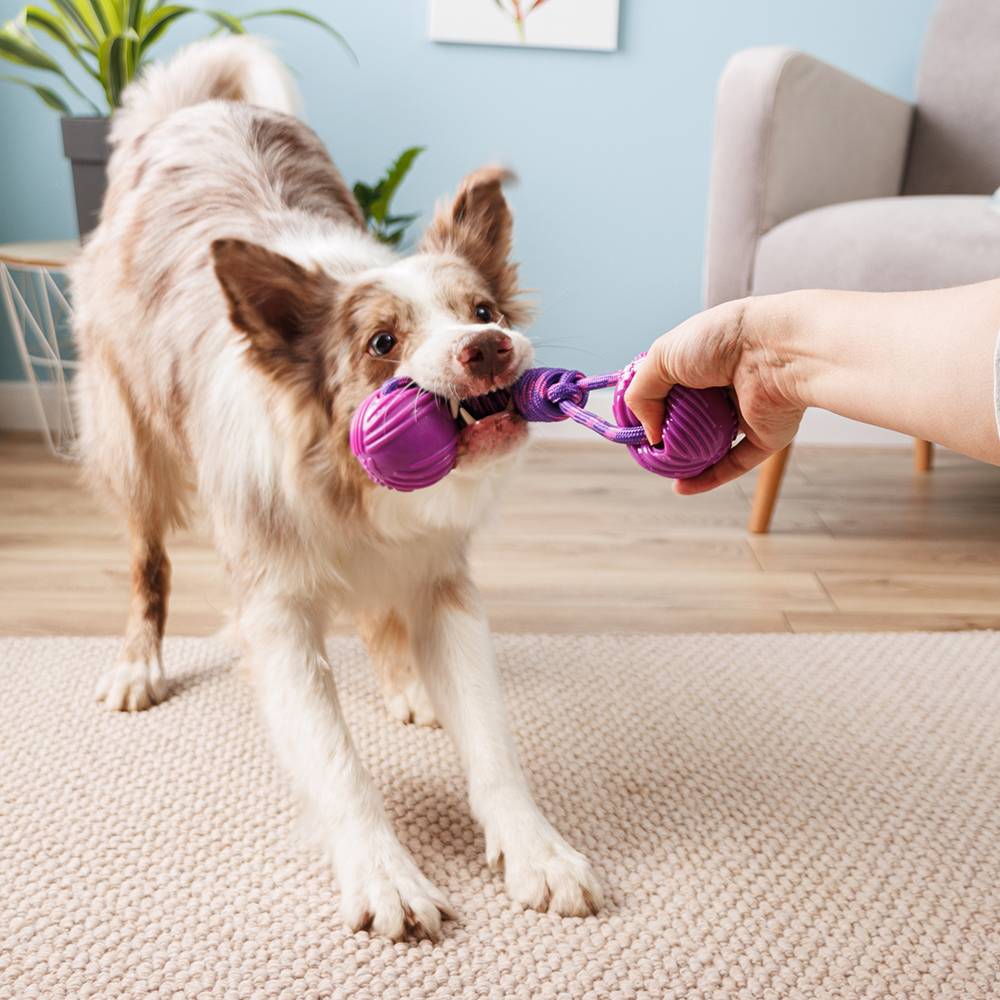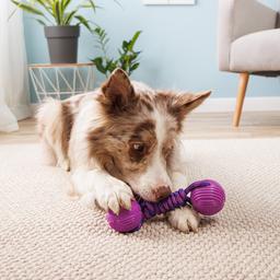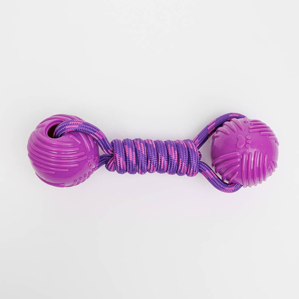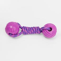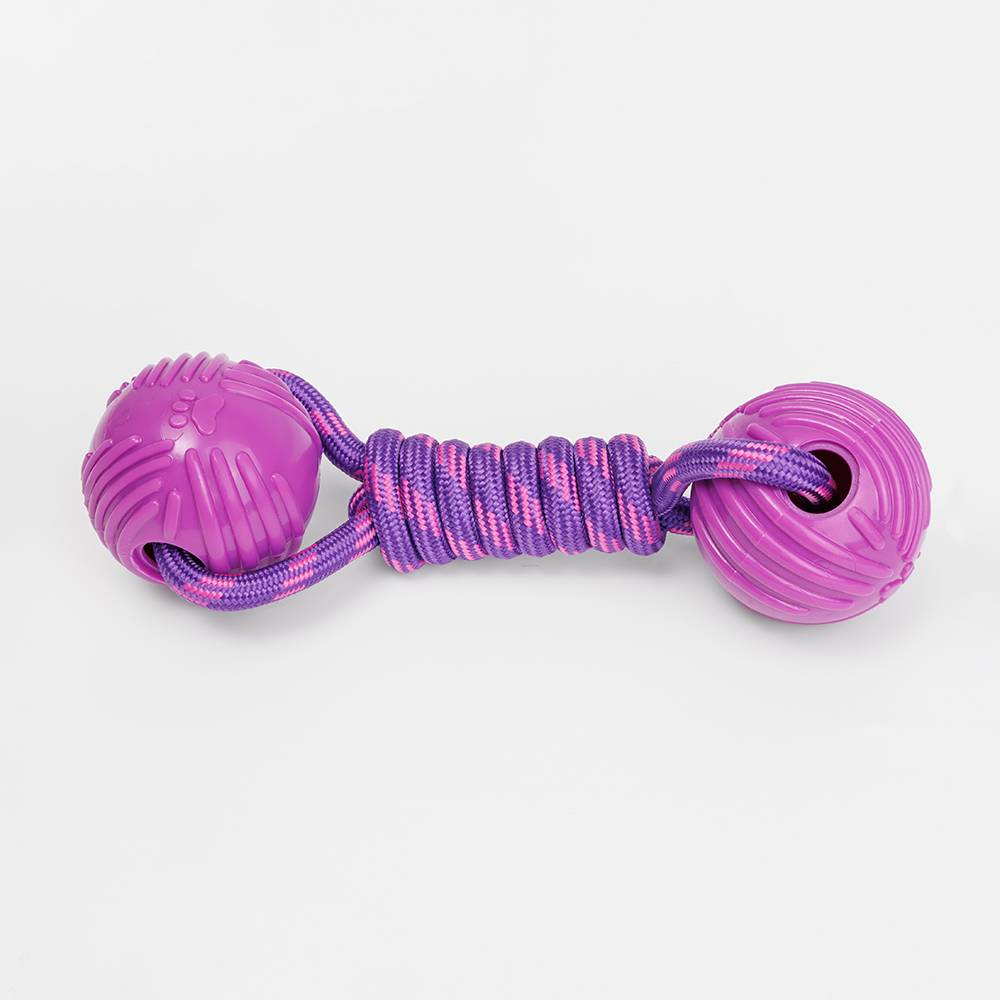 Игрушка для собак Гантель с мячами подойдет для собак мелких, средних и крупных пород.