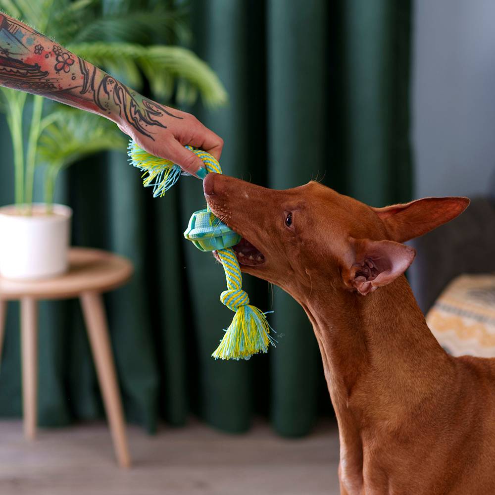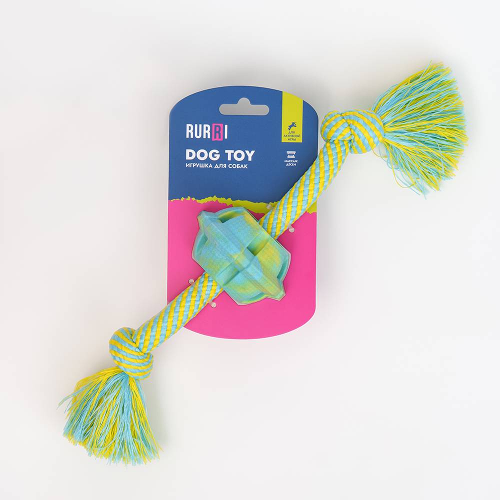 Игрушка для собак Мяч на веревке от бренда Rurri надолго займёт вашего питомца и отвлечёт от нежелательных игр с предметами интерьера.