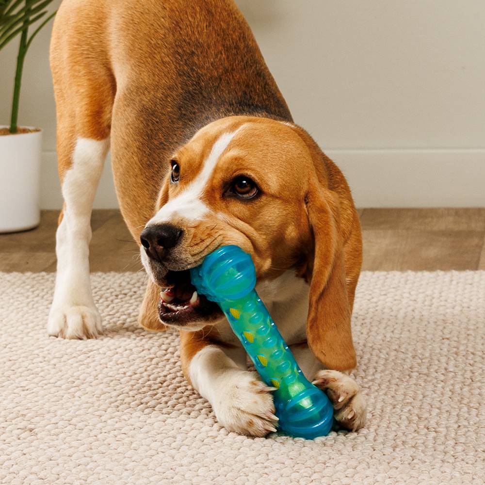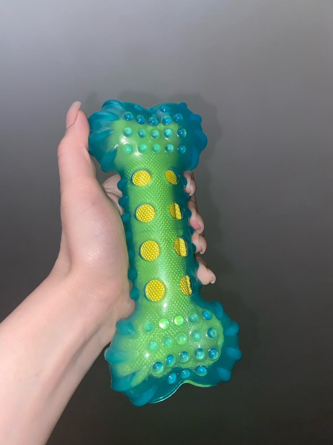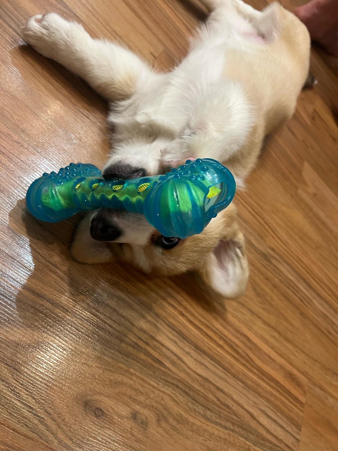 Отличная игрушка по всем параметрам: качественная, крепкая, интересная. Щенок очень любит ее грызть, при нажатии косточка немного шуршит, подогревая интерес малыша к более интенсивным погрызушкам. Косточка очень прочная, щенок грызет ее второй месяц в активной стадии смены молочных Зубов.Комментарий