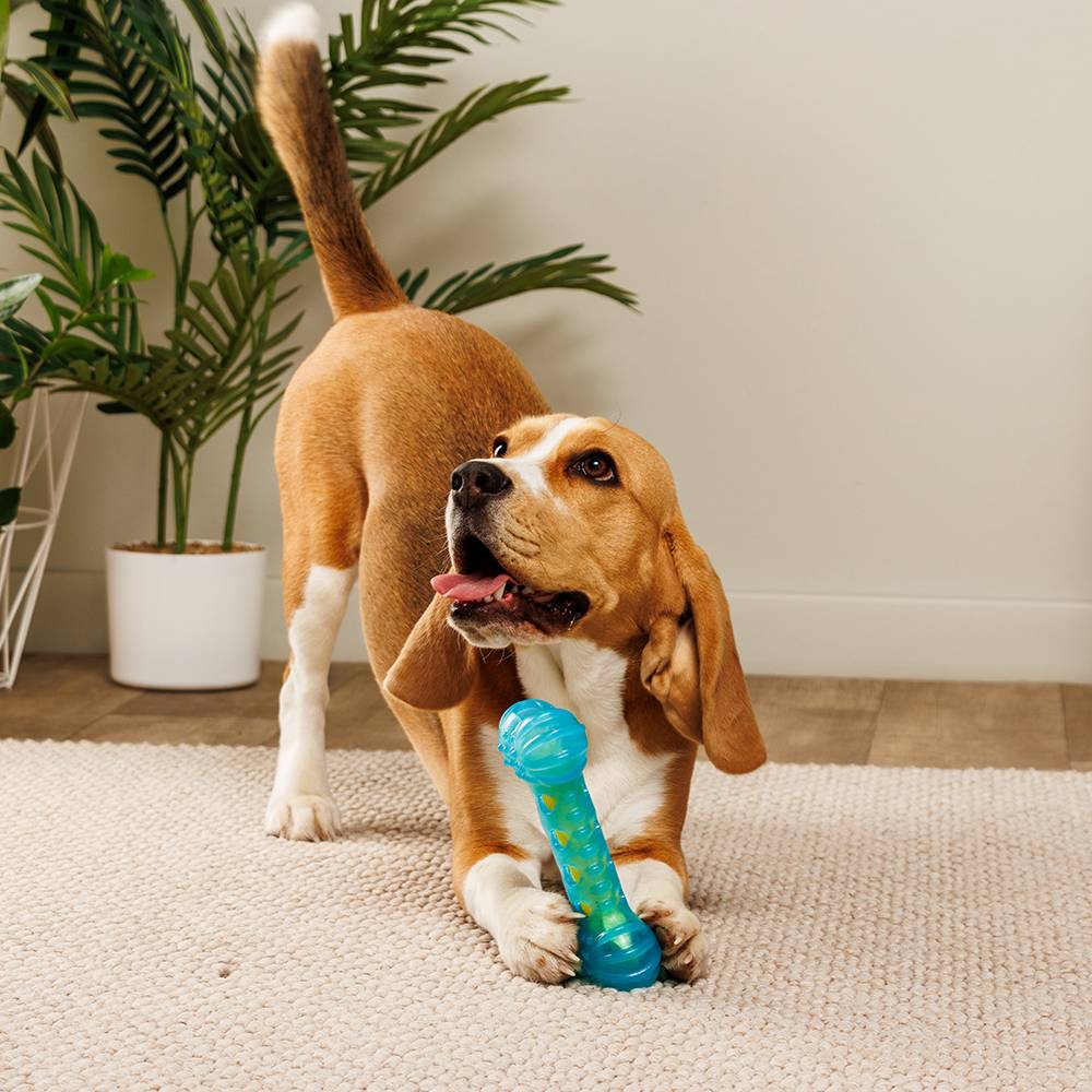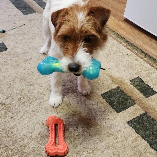 Очень классная и качественная игрушка. Можно использовать пластиковую часть для поисковых игр(прятать туда корм/лакомства чтобы собака доставала оттуда еду), а шуршащую косточку как отдельную игрушку. Для французского бульдога крупновата, но моей девочке понравилась...Комментарий