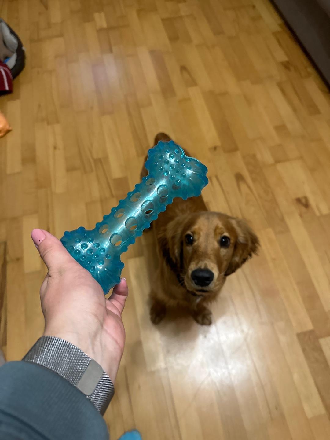 Питомцу косточка понравилась, просит ее стуча зубами, однако, для питбулей, к сожалению,не подходит, части игрушки были...