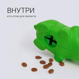 подбирайте игрушку согласно размерам питомца. У собаки не должно быть возможности проглотить изделие целиком или какие-либо его части. Если любимец склонен к поеданию несъедобных предметов, давайте игрушку под присмотром.