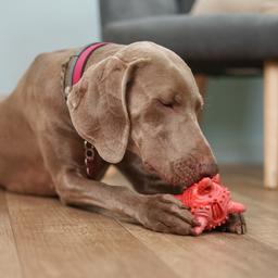 подбирайте игрушку согласно размерам питомца. У собаки не должно быть возможности проглотить изделие целиком или какие-либо его части. Если любимец склонен к поеданию несъедобных предметов, давайте игрушку под присмотром.
