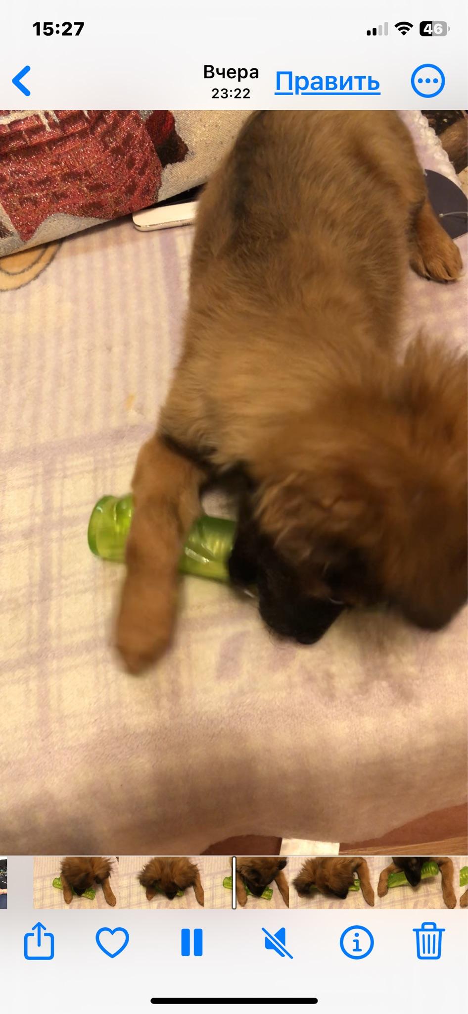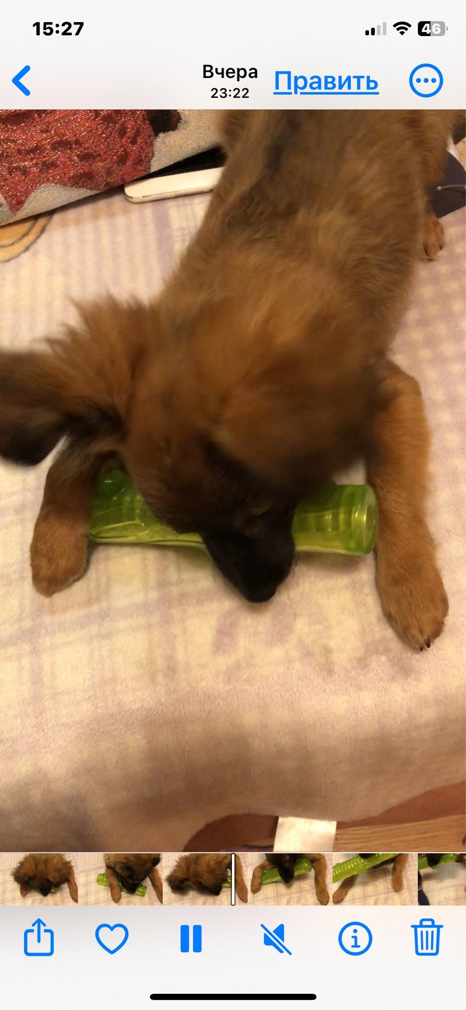Щенок 4 месяца, играет, не терзает ее, а приятно жует, в меру легкая и хорошо прочная