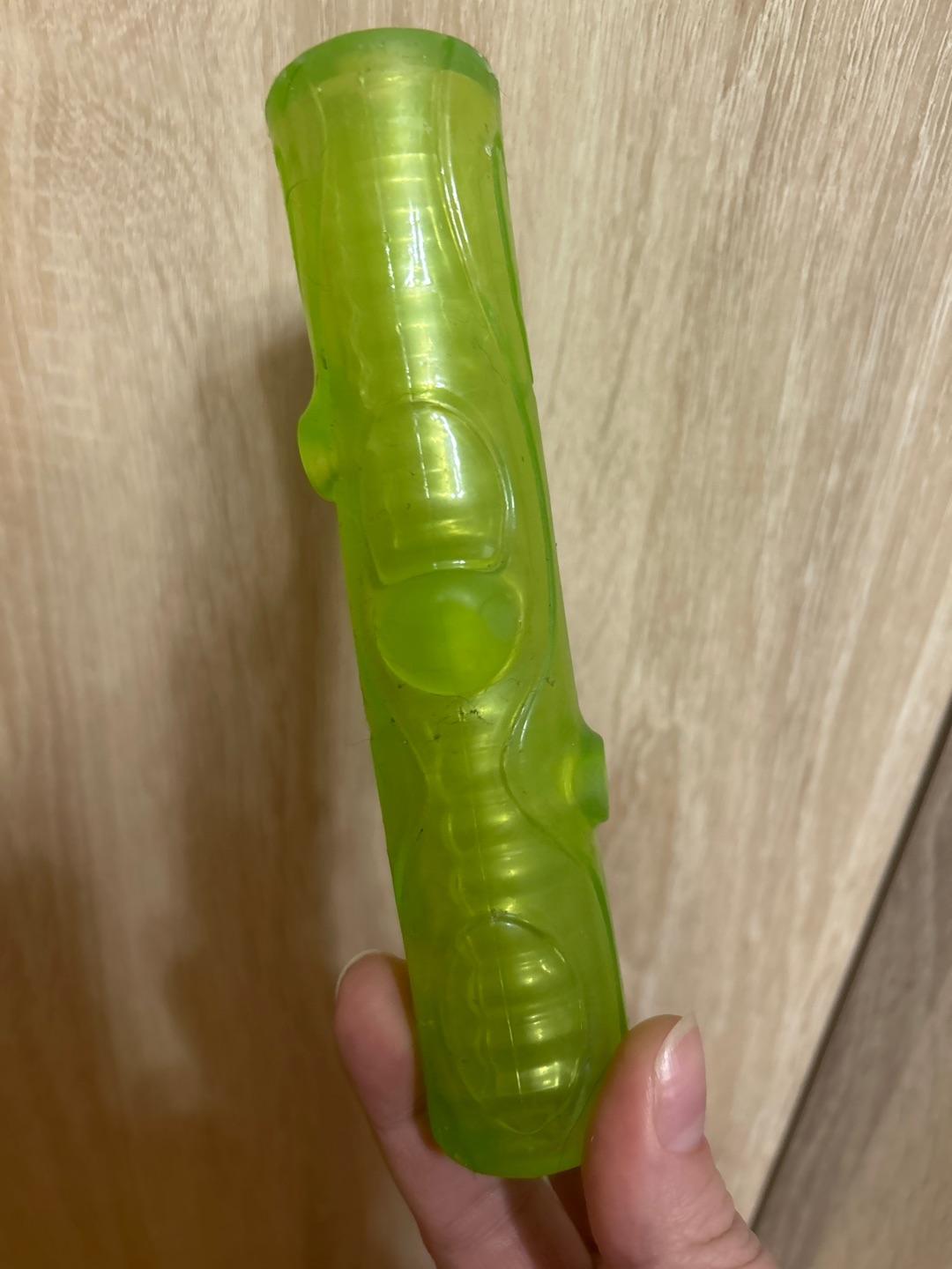 Отличная палочка, щенок уже месяц с ней играет - палочка цела. Крепкая.При грызульках издаёт хруст, собаке нравится. А ещё в полость палочки можно засунуть вкусняшку, игра становится интереснее. Только достать оттуда вкусняшку нереально - отверстие слишком узкое. Мы засовываем несколько гранул сухого корма - они вылетают без проблем.Комментарий