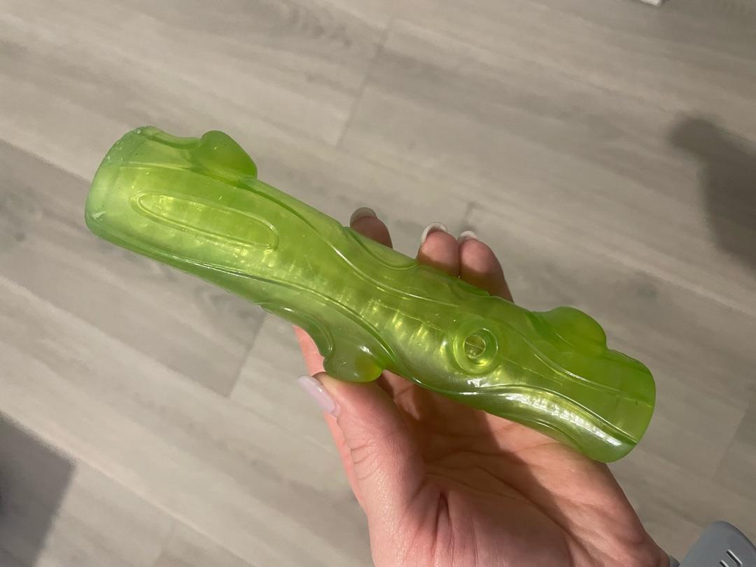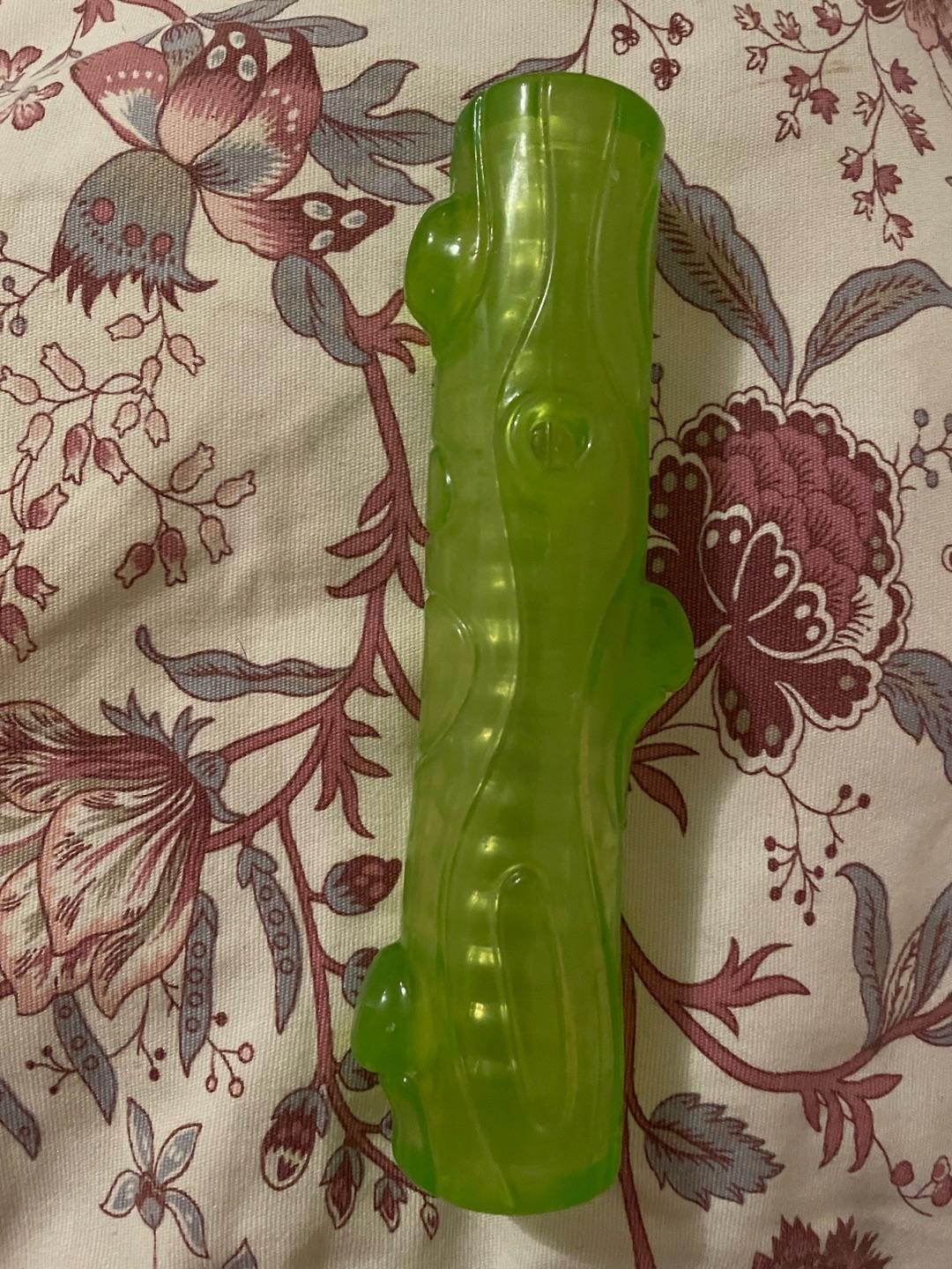 Покупала палочку для фр.бульдога как альтернативу палочкам из дерева и осталась довольна. Игрушка из плотного и очень живучего материала, ему всё не по чем.Комментарий