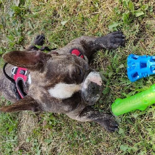 Для французского бульдога подошла отлично, очень стойкая игрушка, хрустит - привлекает внимание. Тяжело что...Комментарий