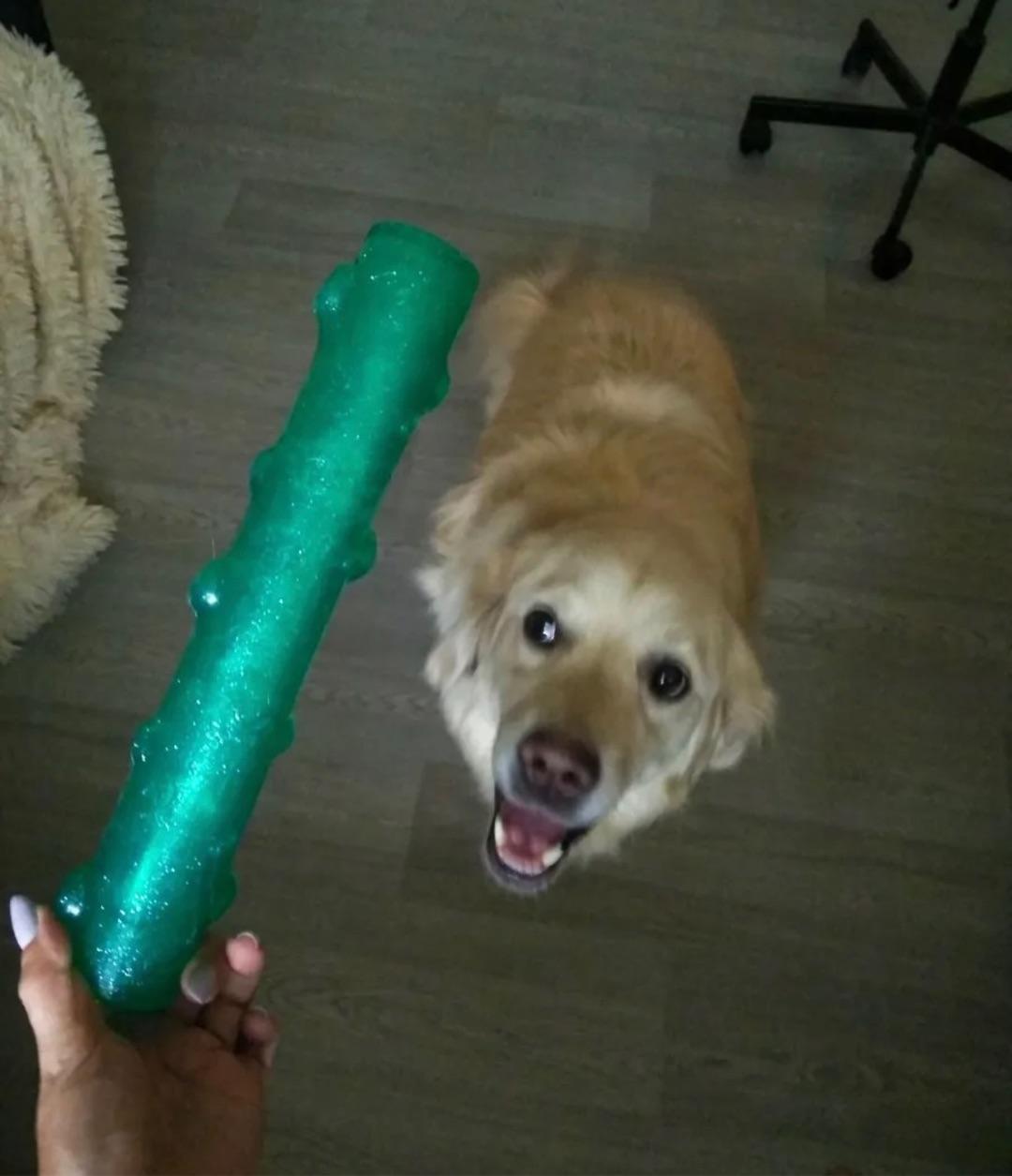 Понравился материал палочки, собаке очень нравится, что она немножко похрустывает во время игры!