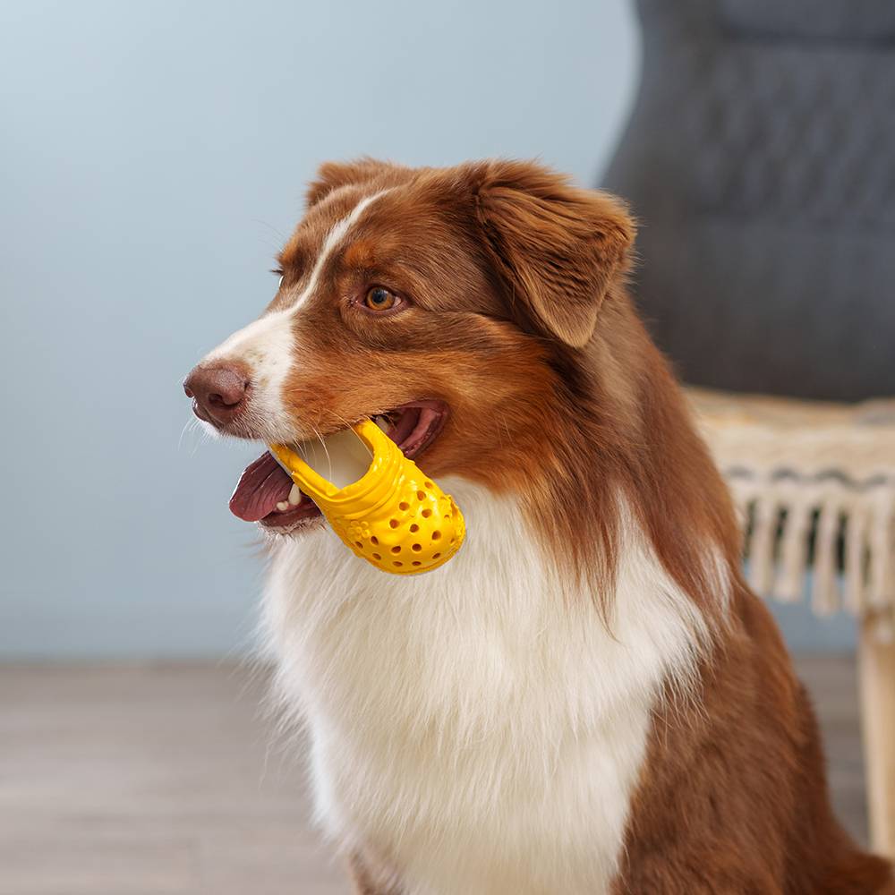 Игрушка для собак Тапок от бренда Rurri займёт вашего питомца и отвлечёт от нежелательных игр с предметами интерьера.