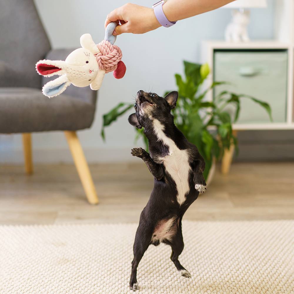 Игрушка для собак Заяц от бренда Rurri займет вашего питомца и отвлечет его от нежелательных игр с предметами интерьера.