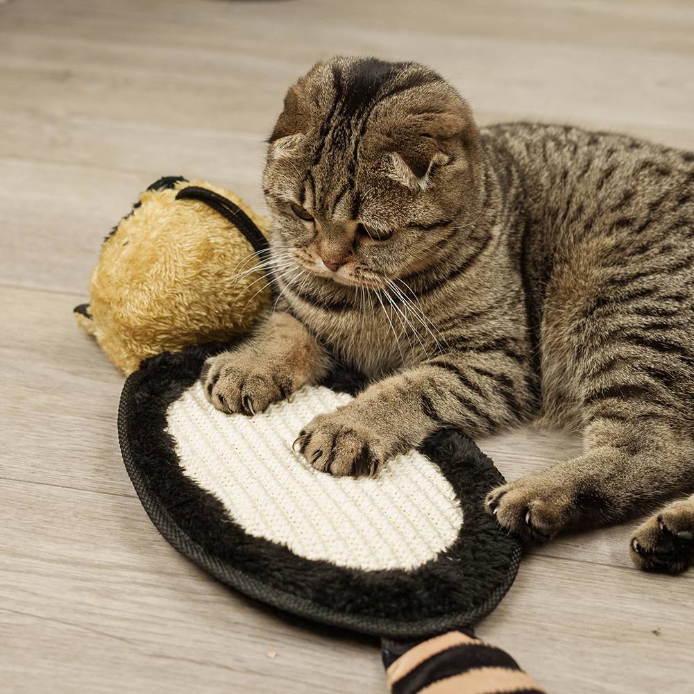 Игрушка-когтеточка для кошек Енот от бренда Rurri станет отличным подарком вашему питомцу и отвлечет его от нежелательных игр с предметами интерьера.