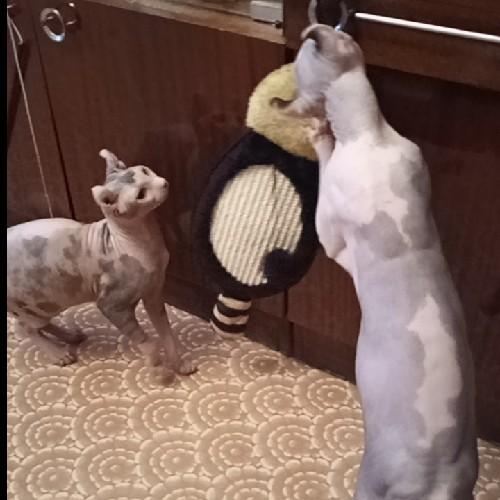 - Есть шуршащий шарик, с которым кот будет играть, опираясь на когтеточку.