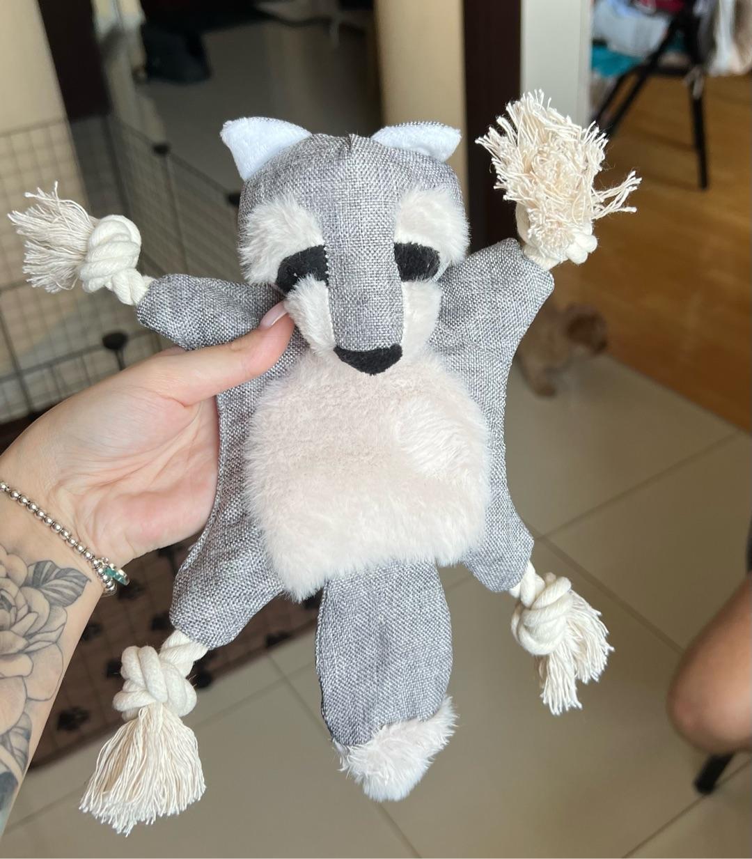 Хорошая игрушка енотик, шуршит и пищит. Песель доволен, французский бульдог играет с удовольствием удобный размер таскать и потрепать игрушкуКомментарий