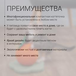 - Развлечет питомца и позволит удовлетворить природный инстинкт затачивания коготков.