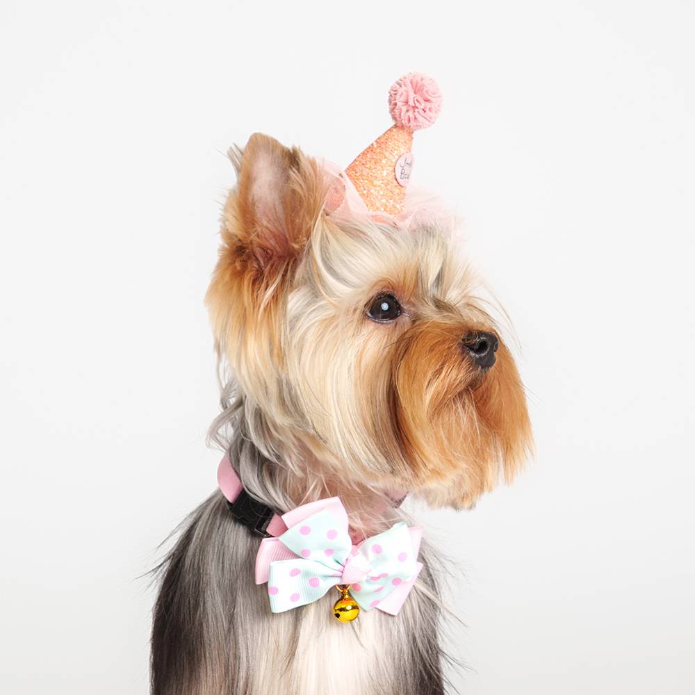 Колпак и бант Happy Birthday от бренда Rurri – праздничный аксессуар для вашего четвероногого друга.