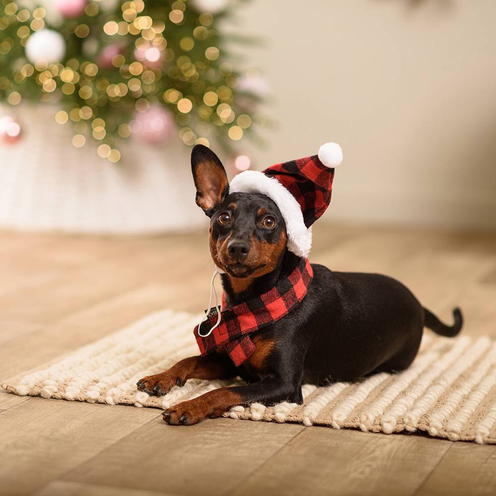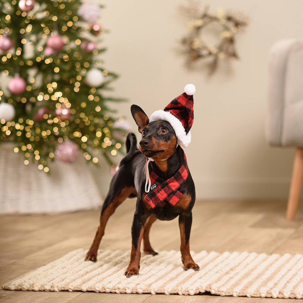 Новогодний колпак и шарф для собак от бренда Rurri подходит не только для повседневных прогулок в холодную погоду, но и для праздничных фотосессий.