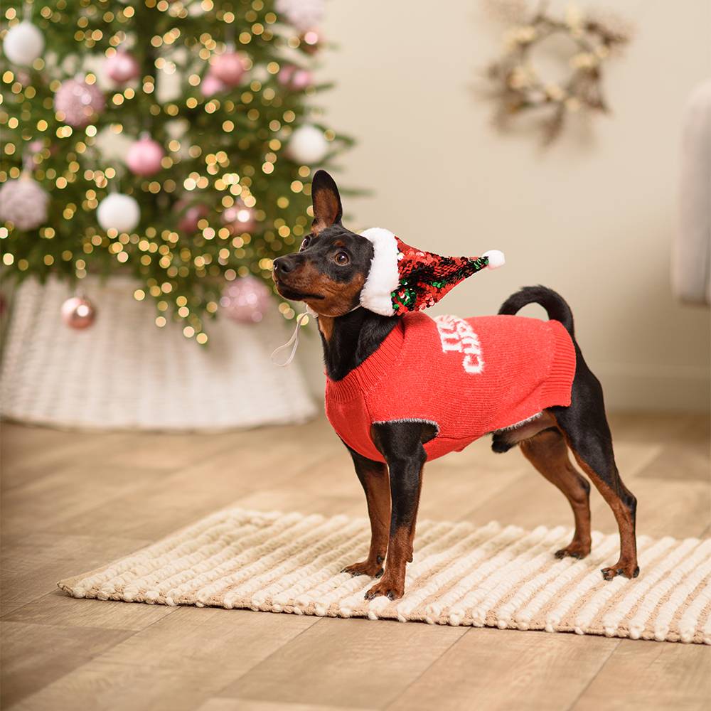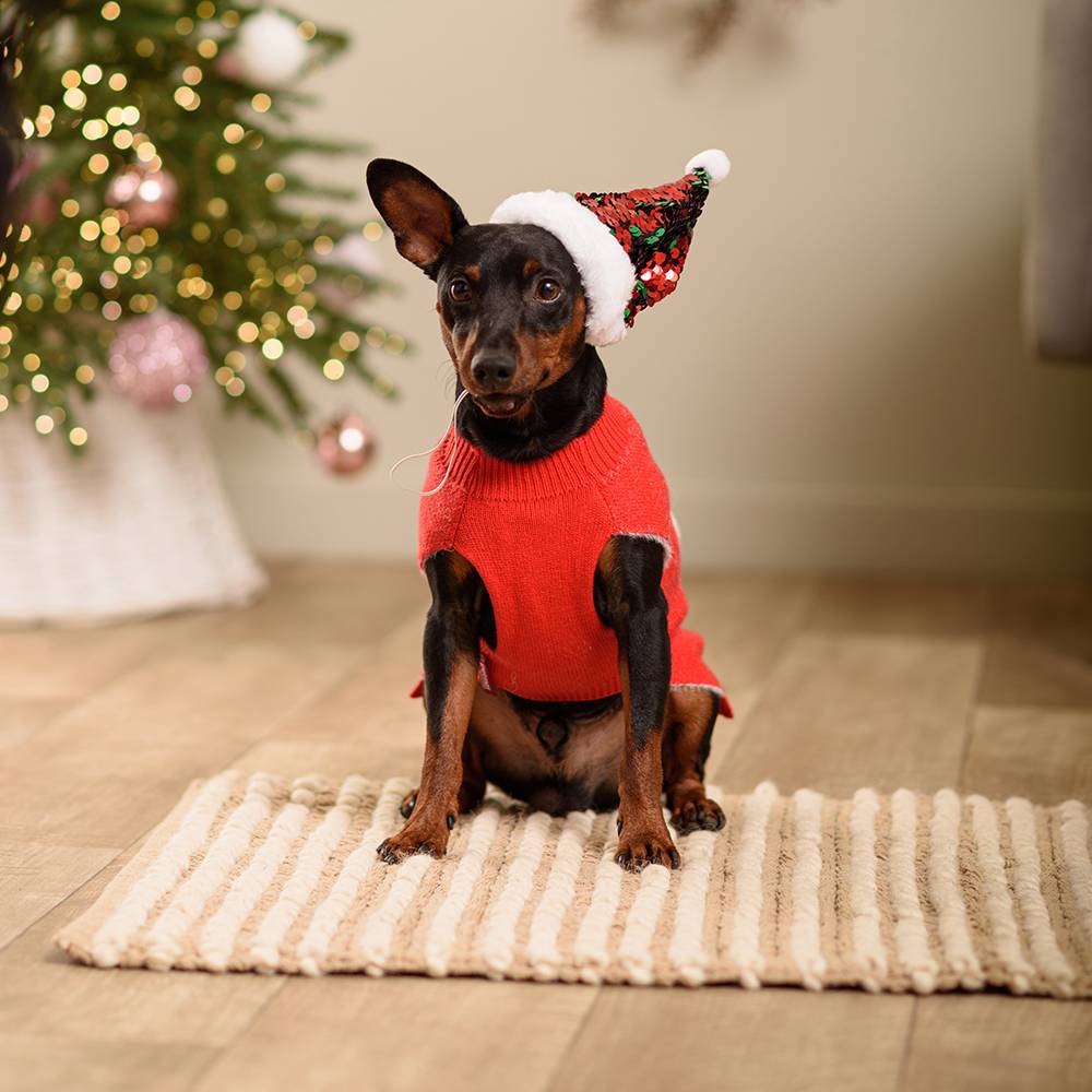 Новогодний колпак для собак от бренда Rurri подойдет для праздничных фотосессий с питомцем.