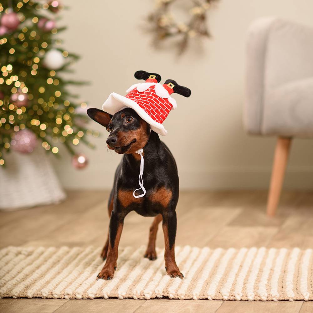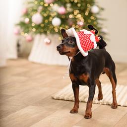 Новогодний колпак для собак от бренда Rurri подойдет для праздничных фотосессий с питомцем.