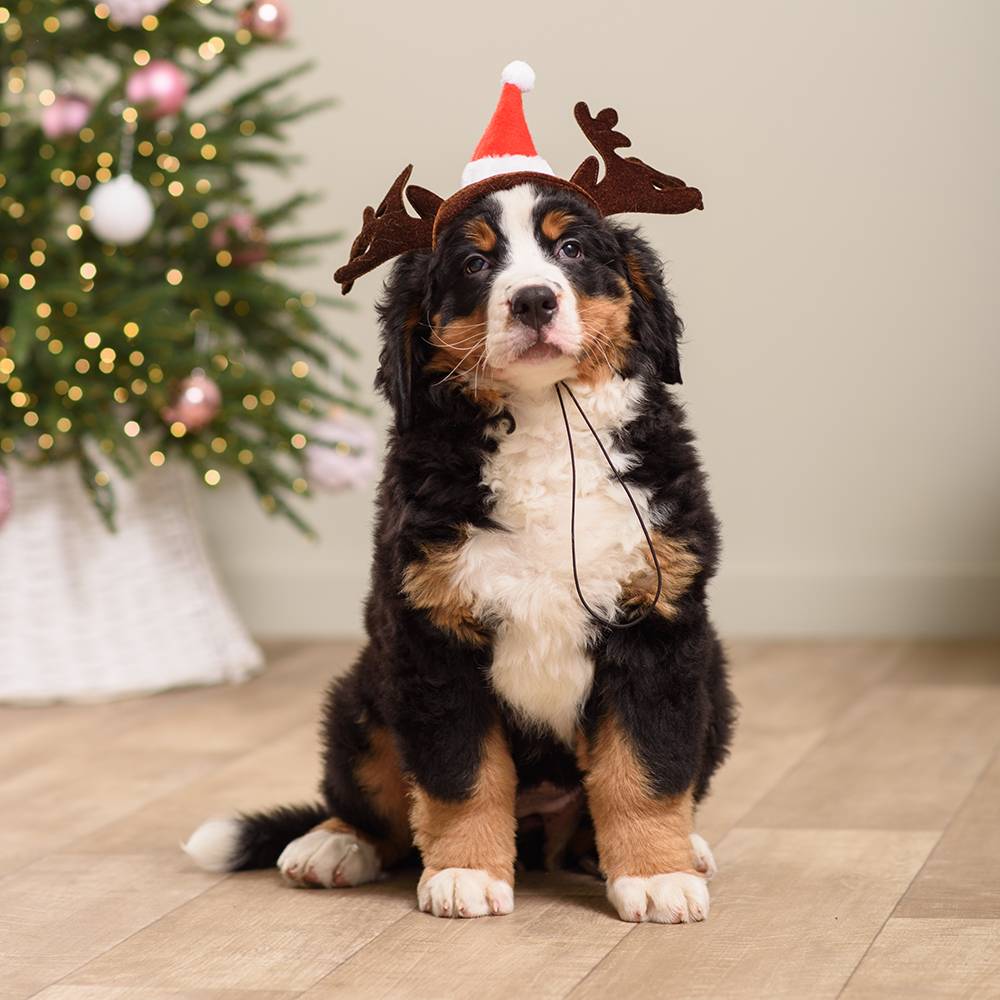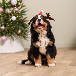Колпак с рогами для собак от бренда Rurri подойдет для праздничных фотосессий с питомцем.