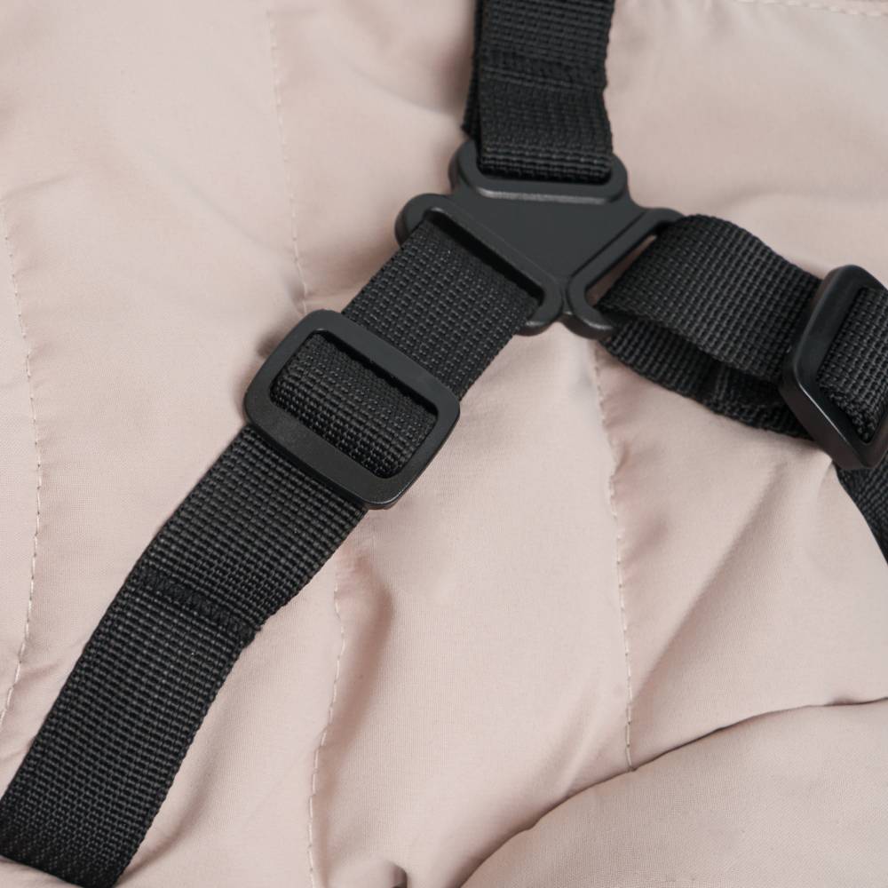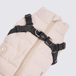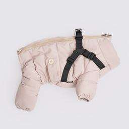 - К комбинезону пришита шлейка с креплениями для поводка .