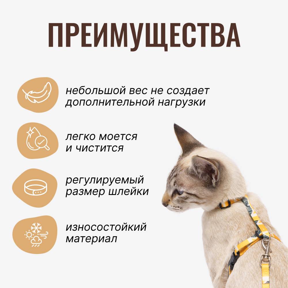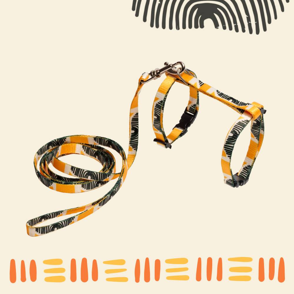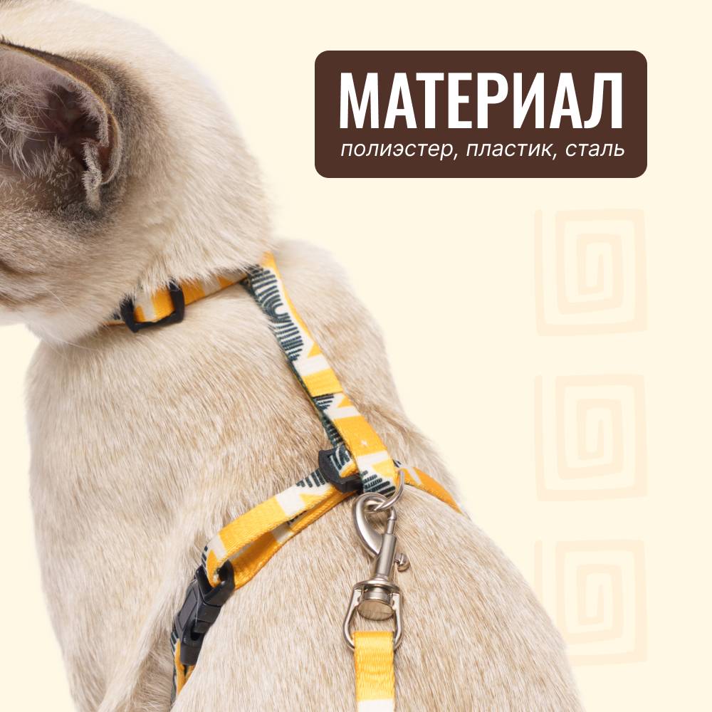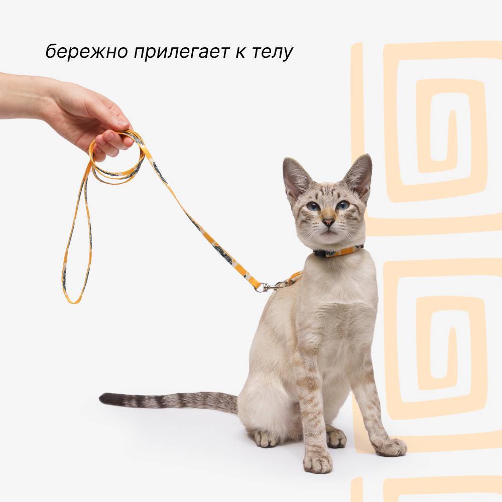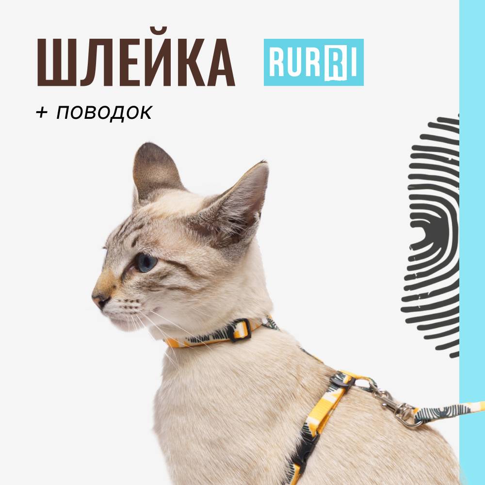 Комплект амуниции для кошек из коллекции Саванна от бренда RURRI – удобный и яркий аксессуар для комфортных прогулок.