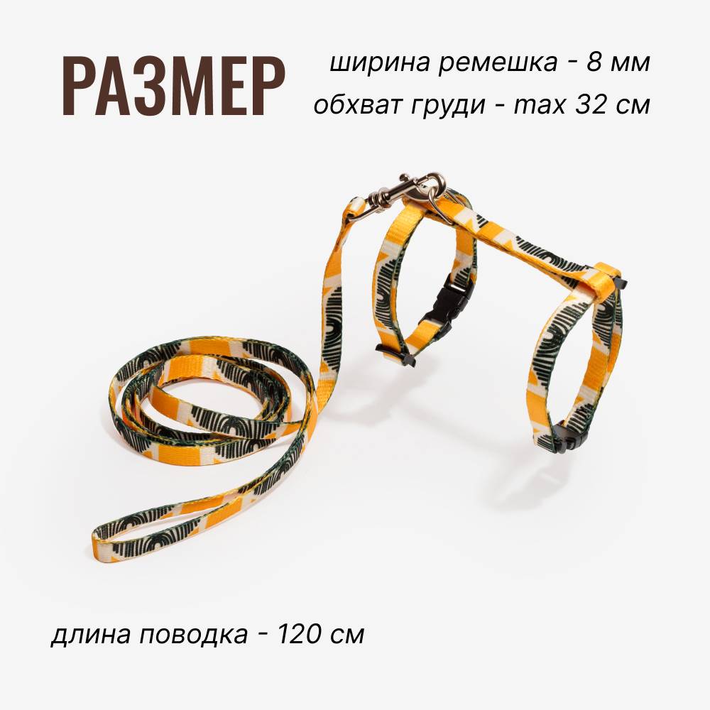 Размер: обхват груди 32 см, длина поводка 120 см, ширина ремешка 0,8 см