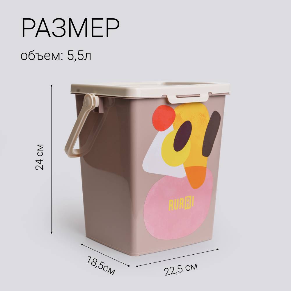 RURRI Контейнер для сухого корма, 5,5 л, 22,5х18,5х24 см, какао