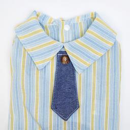 - Стильный дизайн: имитация джинсов и рубашки с галстуком.