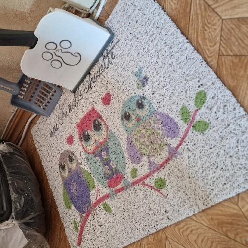 - Коврик для кошачьего туалета отличается ярким и стильным дизайном.