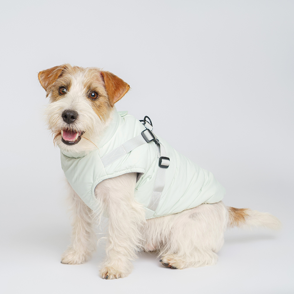 Хорошая, удобная вещь, удобно что не нужно дополнительно одевать шлейку или поводок, не маркая ,можно протереть влажной тряпкой и до следующего раза когда идешь на улицу жилетка сухая.