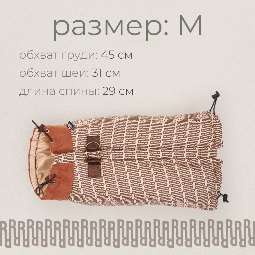 Размер M: длина спины 29 см, обхват груди 45 см, обхват шеи 31 см