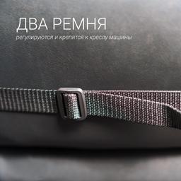 Кресло очень понравилось, долго выбирала на разных сайтах и остановилась на этом. Кожа мягкая, подушка - лежак из приятной ткани. Сделано качественно, не маленькое. Размером даже чуть больше одиночного сиденья в машине. Для взрослого Француза подойдёт идеально. Крепится за подголовник и за спинку сиденья ремнями, которые вшиты в кресло.