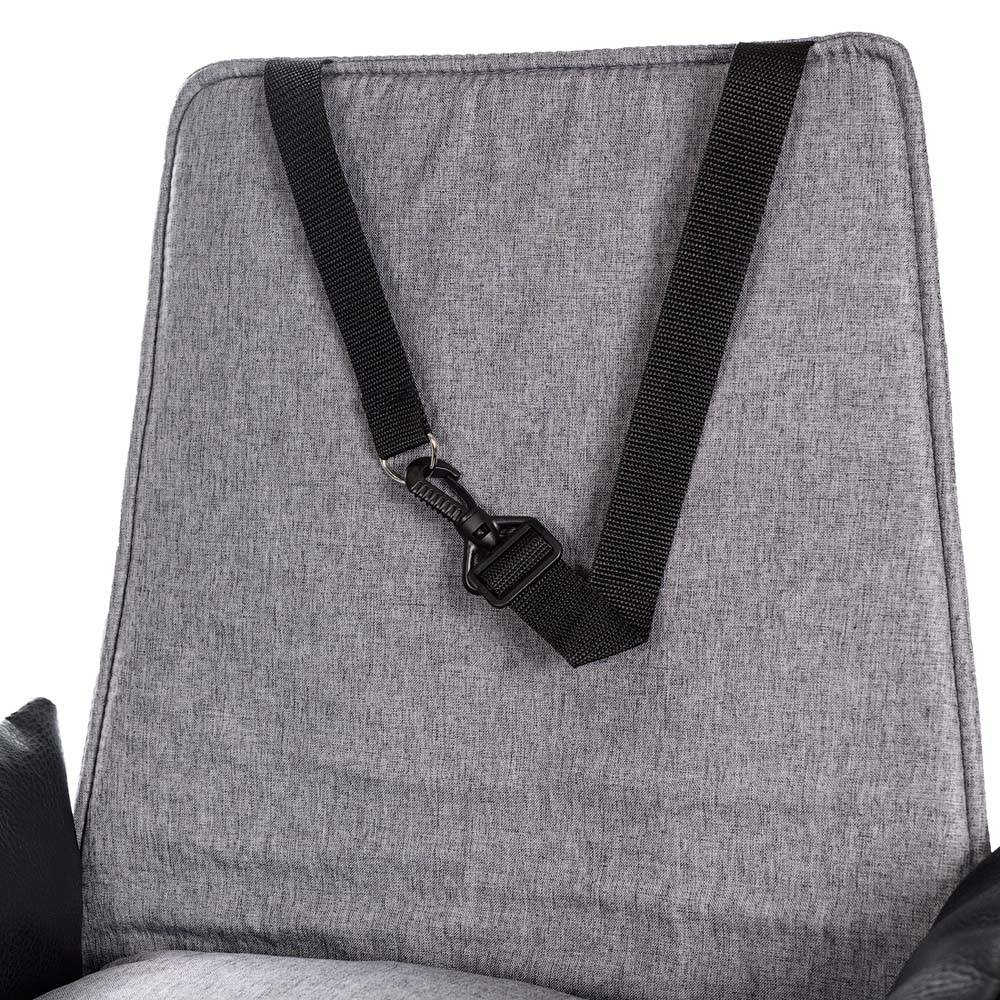 - Удобная спинка, которая фиксируется к сиденью с помощью ремешка и карабина.