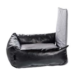- Лежак изготовлен из жаккарда (100% полиэстер) и искусственной кожи плотностью 220 г/м². Ткань плотная и отлично держит форму, не растягивается, устойчива к повреждениям от когтей животного.