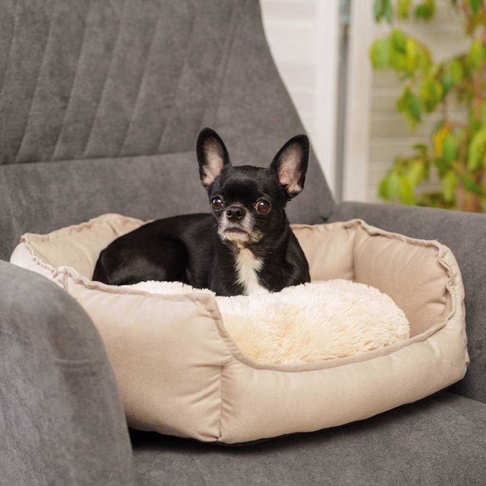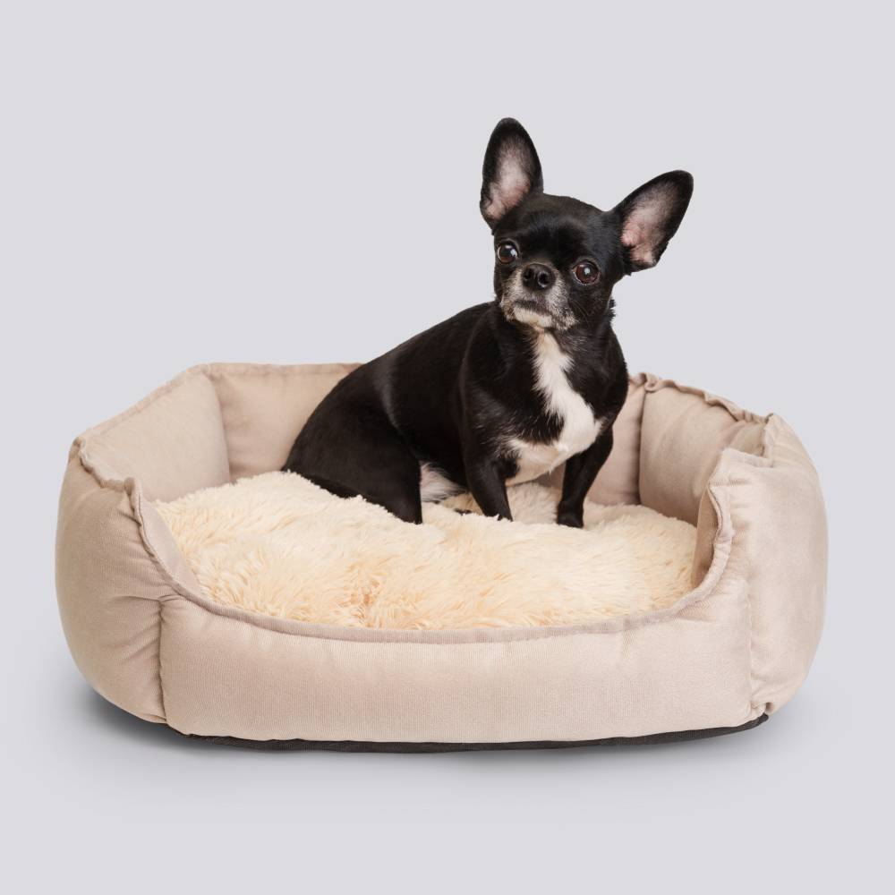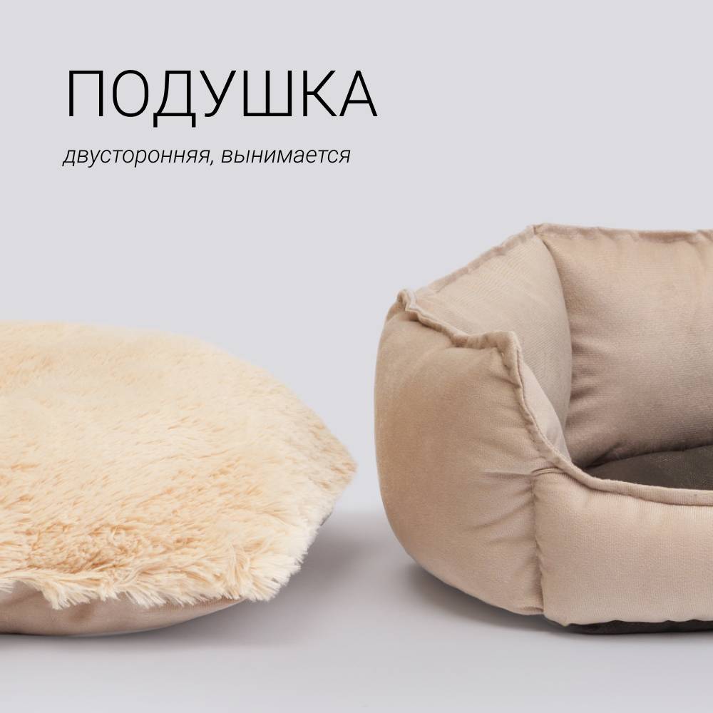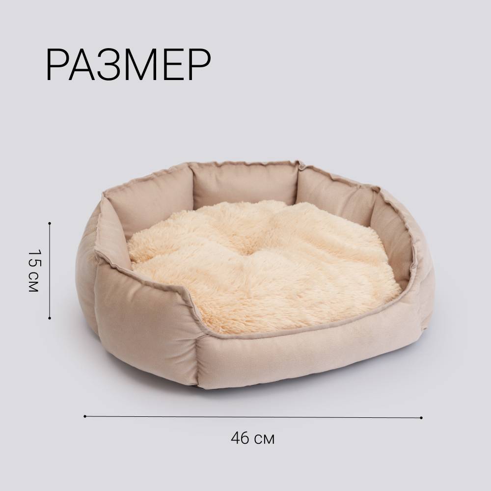 RURRI Лежак с мехом для кошек и собак мелких и средних пород, 46х46х15 см, бежевый