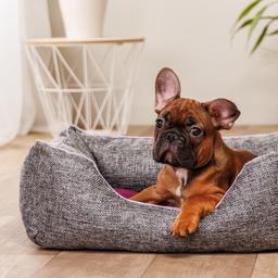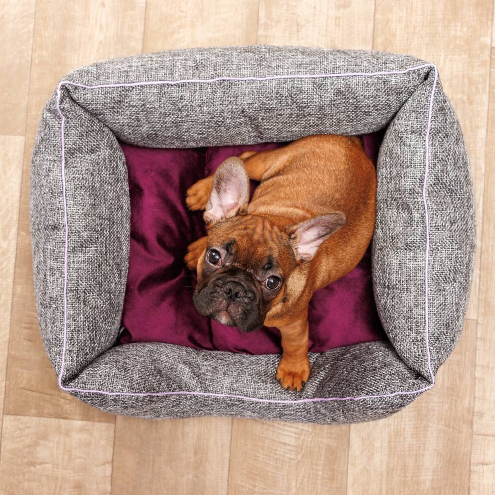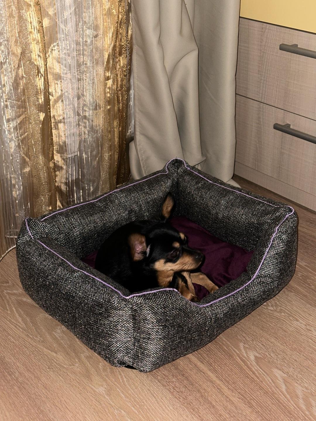 Собачка в восторге. Отличный высокий бортик, не проминается, не ломается. Подушечка двухсторонняя, красивого элегантного цвета, вынимается (можно легко постирать) собачке тепло и мягко.Комментарий