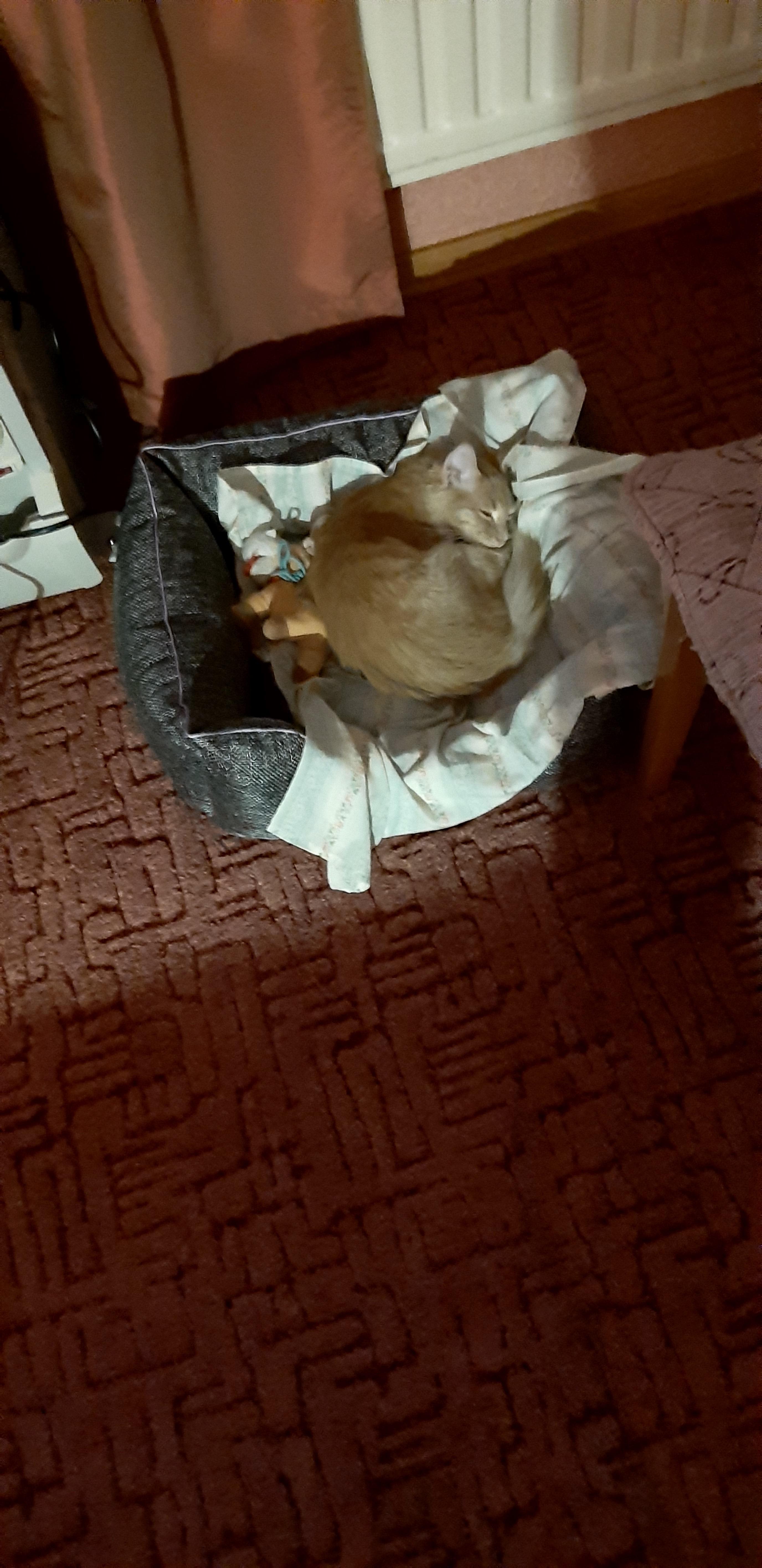 Котик сначала долго принюхивался. Я постелила пеленку, чтобы запах был домашний.Комментарий