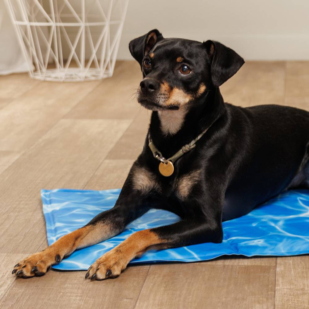- Специальный гель внутри мата активируется под весом животного и поглощает тепло тела, создавая приятную прохладу. Для усиления эффекта коврик можно положить на два часа в холодильник.