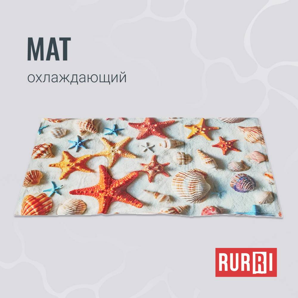 Охлаждающий мат "Морской берег" от бренда RURRI регулирует температуру тела питомца в жаркий период.