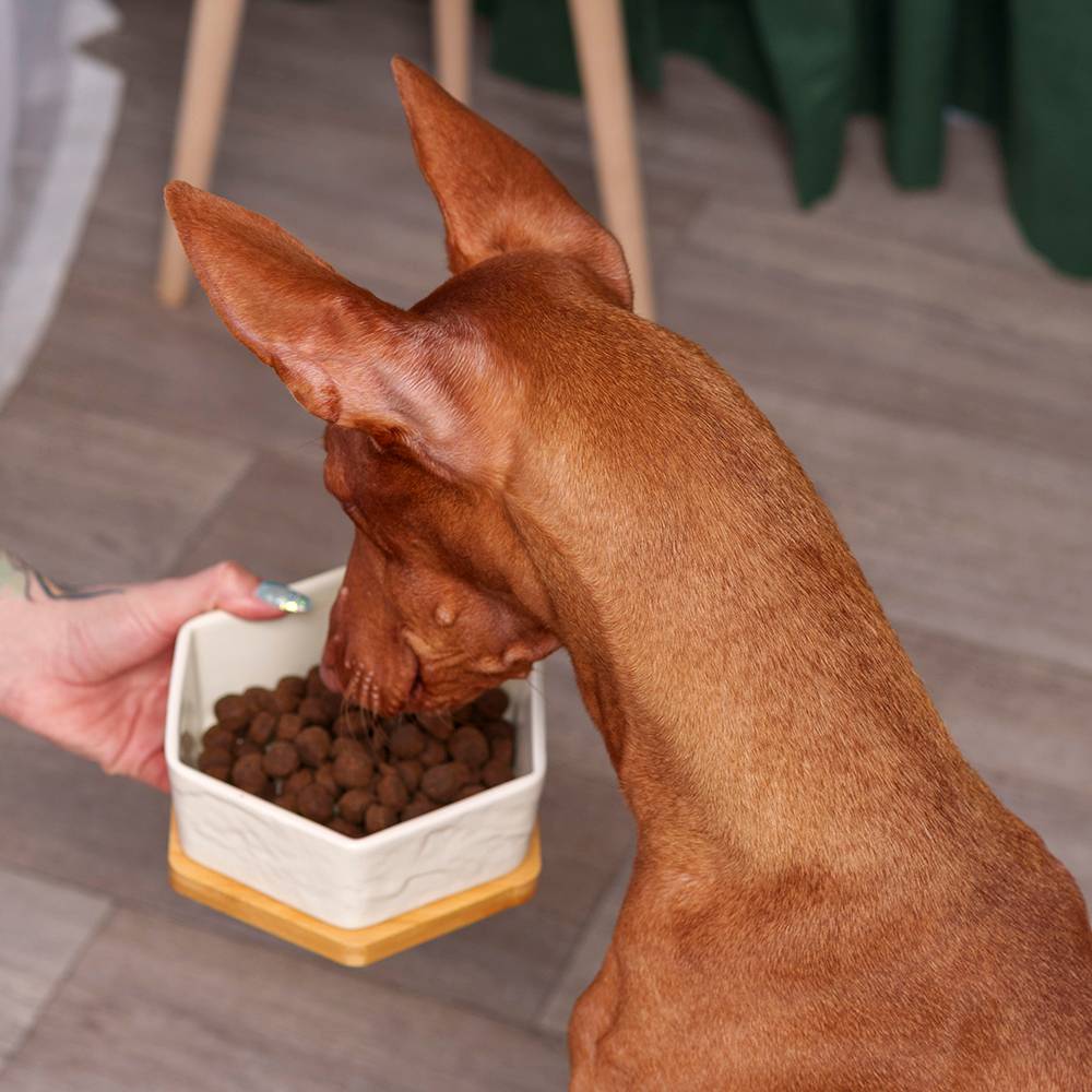 Миска на подставке от бренда Rurri подойдет для собак средних и крупных пород.