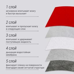 - Последний антискользящий слой фиксирует пеленку на поверхности и благодаря своей сетчатой структуре пропускает воздух, тем самым ускоряя высыхание пеленки.