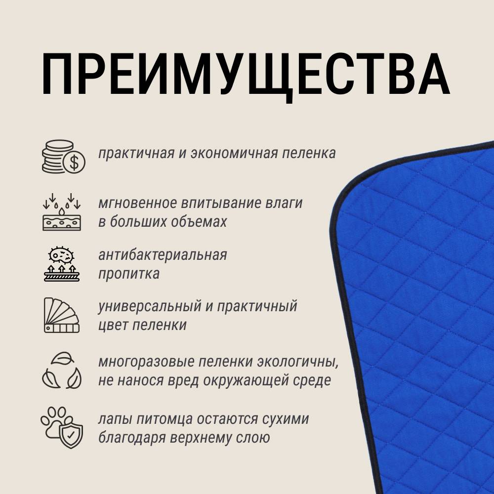 Многоразовая пеленка для собак со швейцарской антибактериальной пропиткой и мембраной, размер 60*60 см.