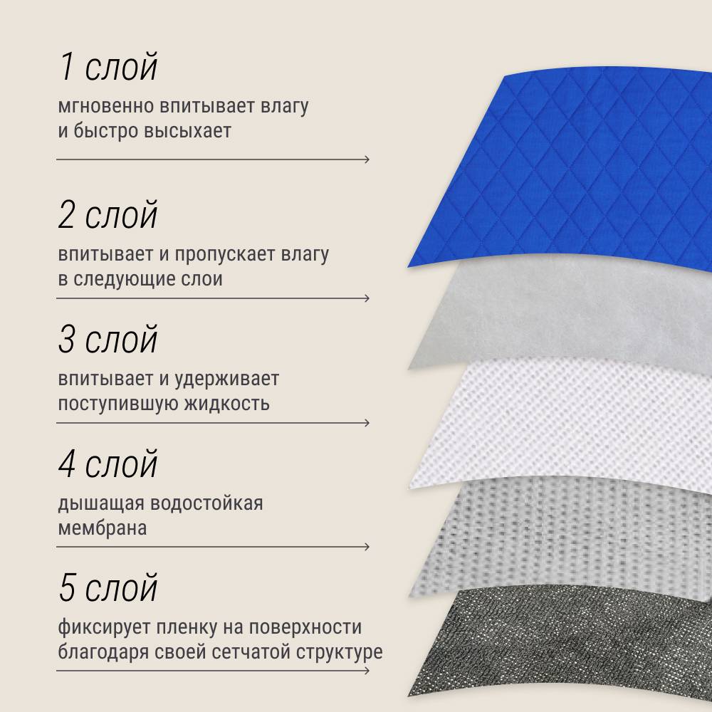 - Второй слой из нетканого полотна впитывает и пропускает влагу в следующие слои.