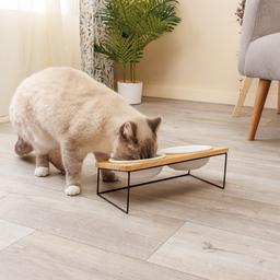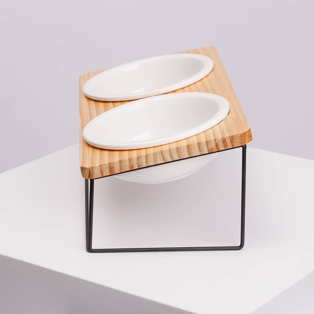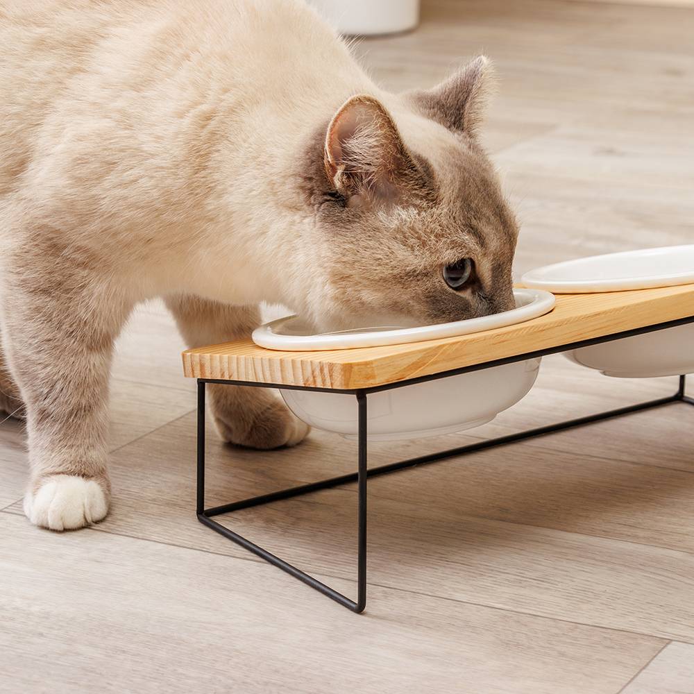 - Стильные миски на подставке гармонично впишутся в интерьер вашей кухни.