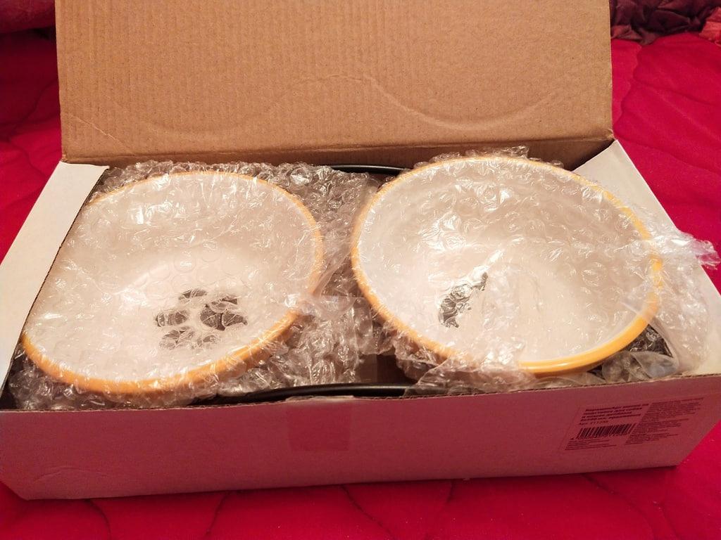 Набор из двух керамических мисок подойдет для взрослых кошек и собак, щенков и котят.