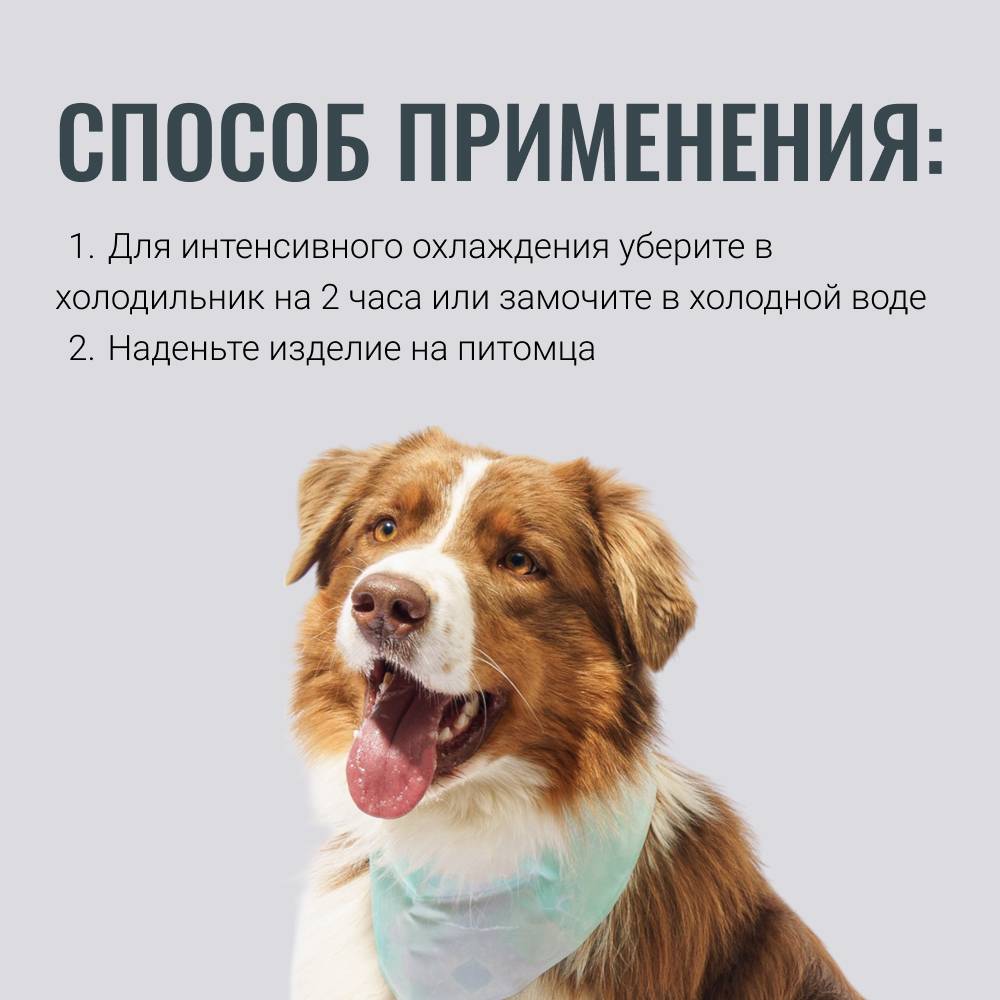 - Охлаждающий эффект – замочите ошейник в холодной воде, отожмите и наденьте на питомца.