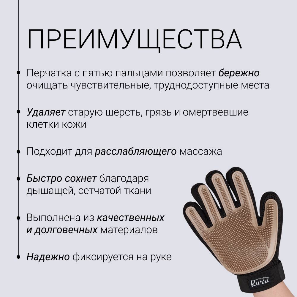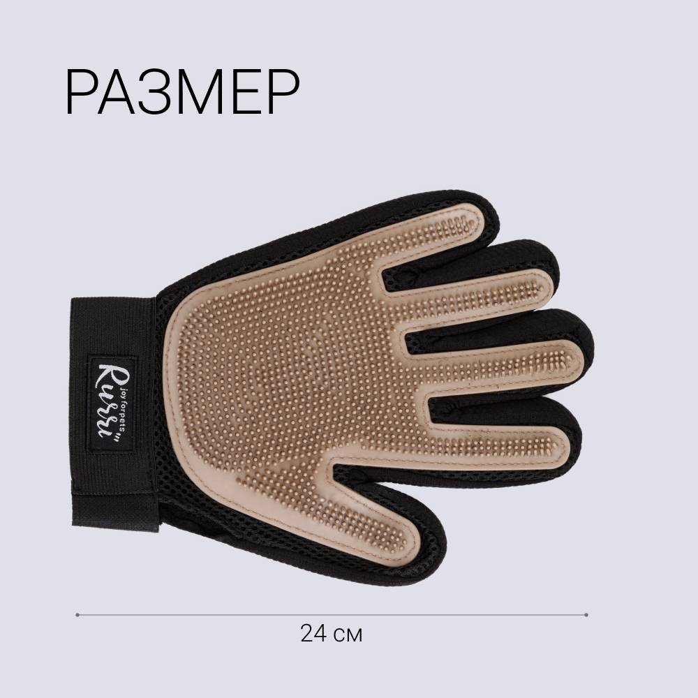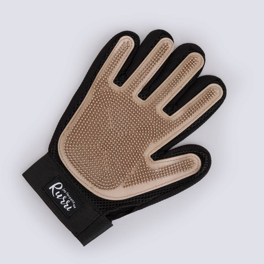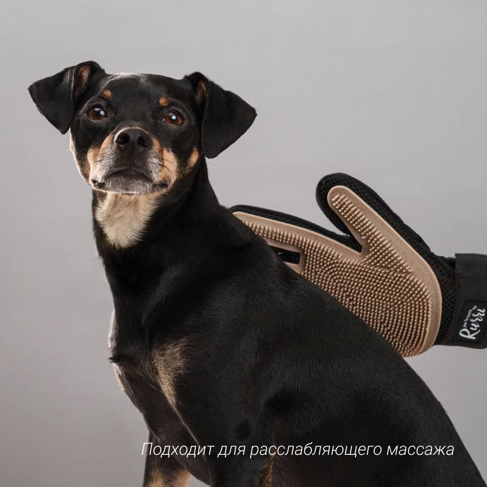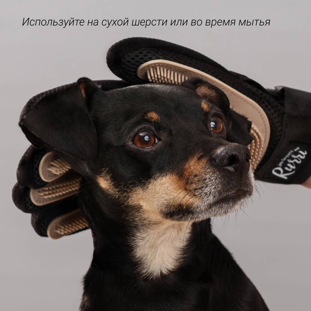 Перчатка для груминга RURRI освобождает от старой шерсти и грязи. Просто наденьте на руку и гладьте – процесс такого расчёсывания понравится любому питомцу.