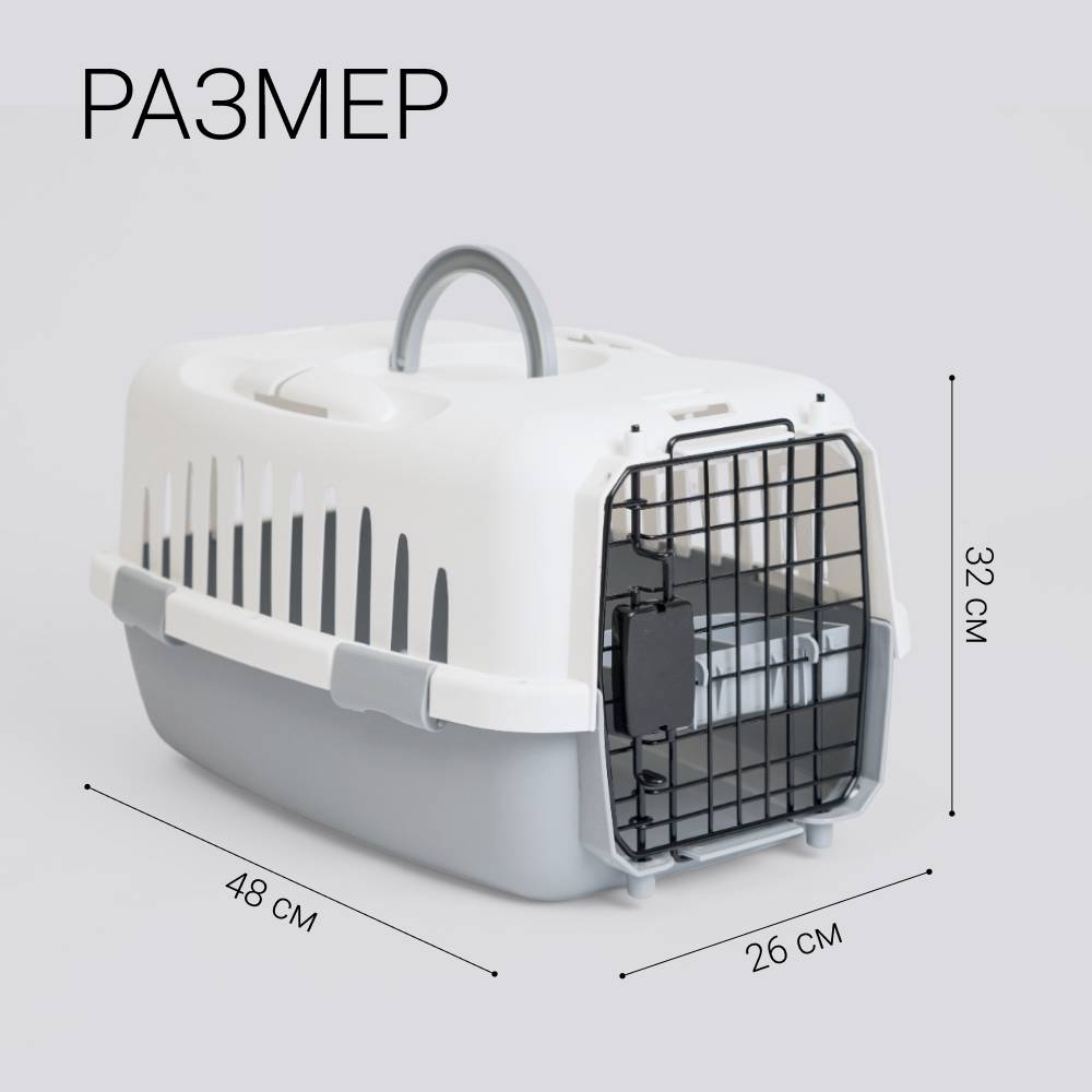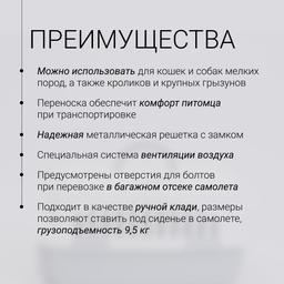 Пластиковая переноска от бренда Rurri подойдет для перевозки кошек и собак мелких пород, а также кроликов и крупных грызунов.